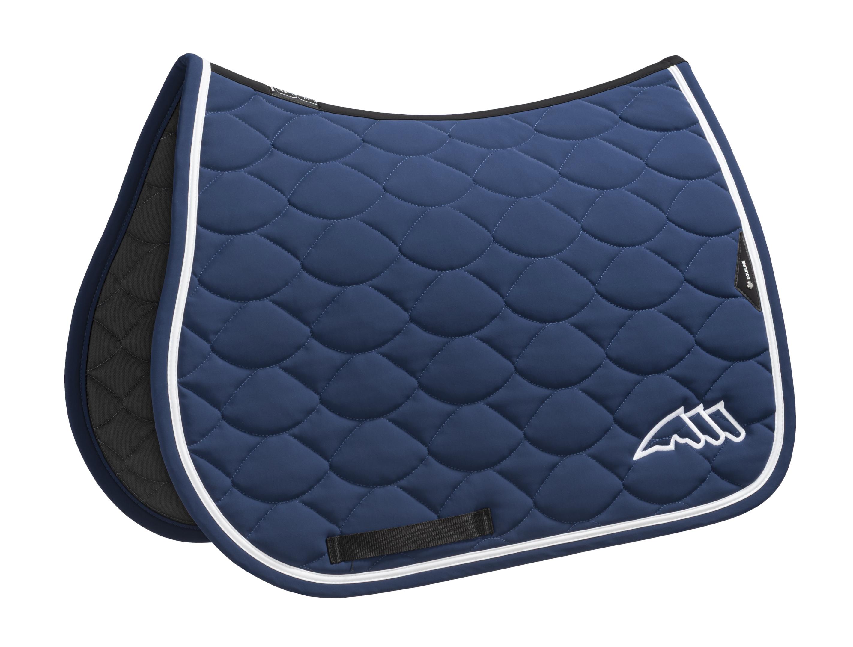 Ein elegantes weißes Einfassband und das edle Pferdekopf-Logo runden das Design stilvoll ab – ideal für Training und Turnier.