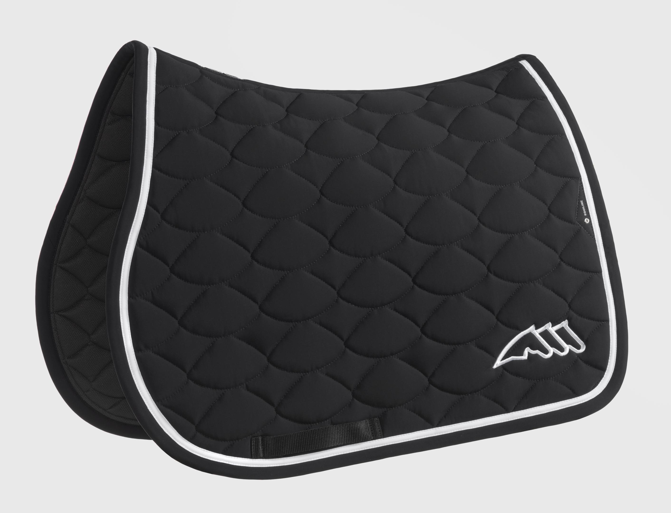 Ein elegantes weißes Einfassband und das edle Pferdekopf-Logo runden das Design stilvoll ab – ideal für Training und Turnier.