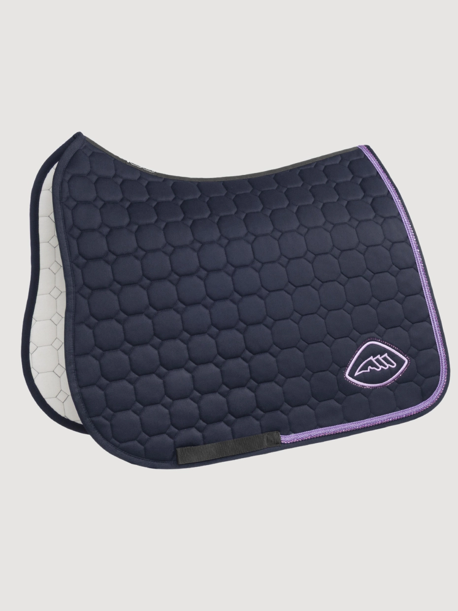Die Equiline Dressur Schabracke EQGloc vereint edles Design mit innovativer Funktionalität und ist die perfekte Wahl für Reiterinnen, die auf dem Dressurplatz stilvoll glänzen möchten. In klassischem Blau mit lila Glitzer-Details sorgt diese Schabracke für einen eleganten und zugleich auffälligen Auftritt.