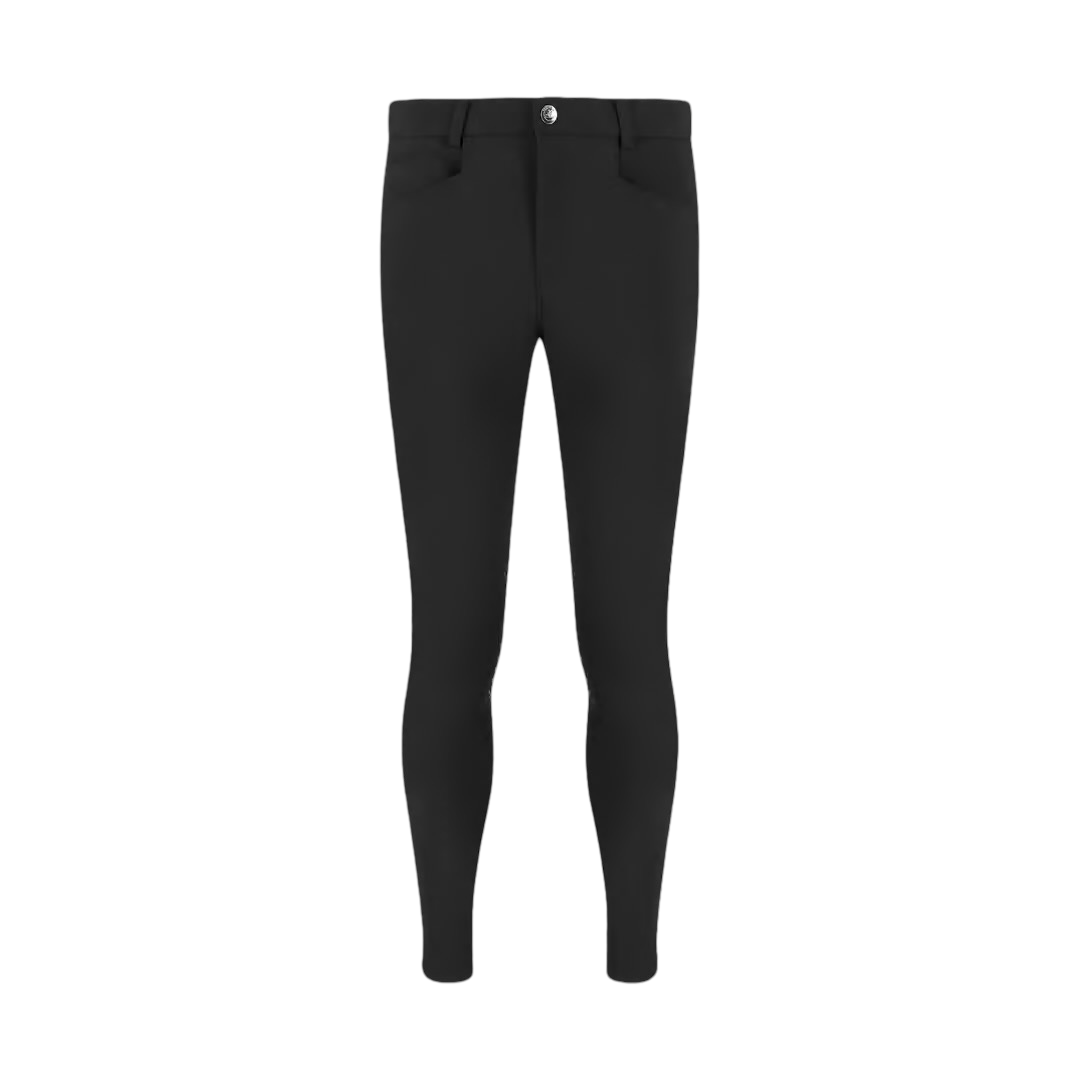 Zwei praktische Vordertaschen sowie zwei aufgesetzte Gesäßtaschen runden das funktionale Design ab. Der elastische Beinabschluss sorgt für einen perfekten Sitz unter Reitstiefeln oder Chaps und verhindert Druckstellen.