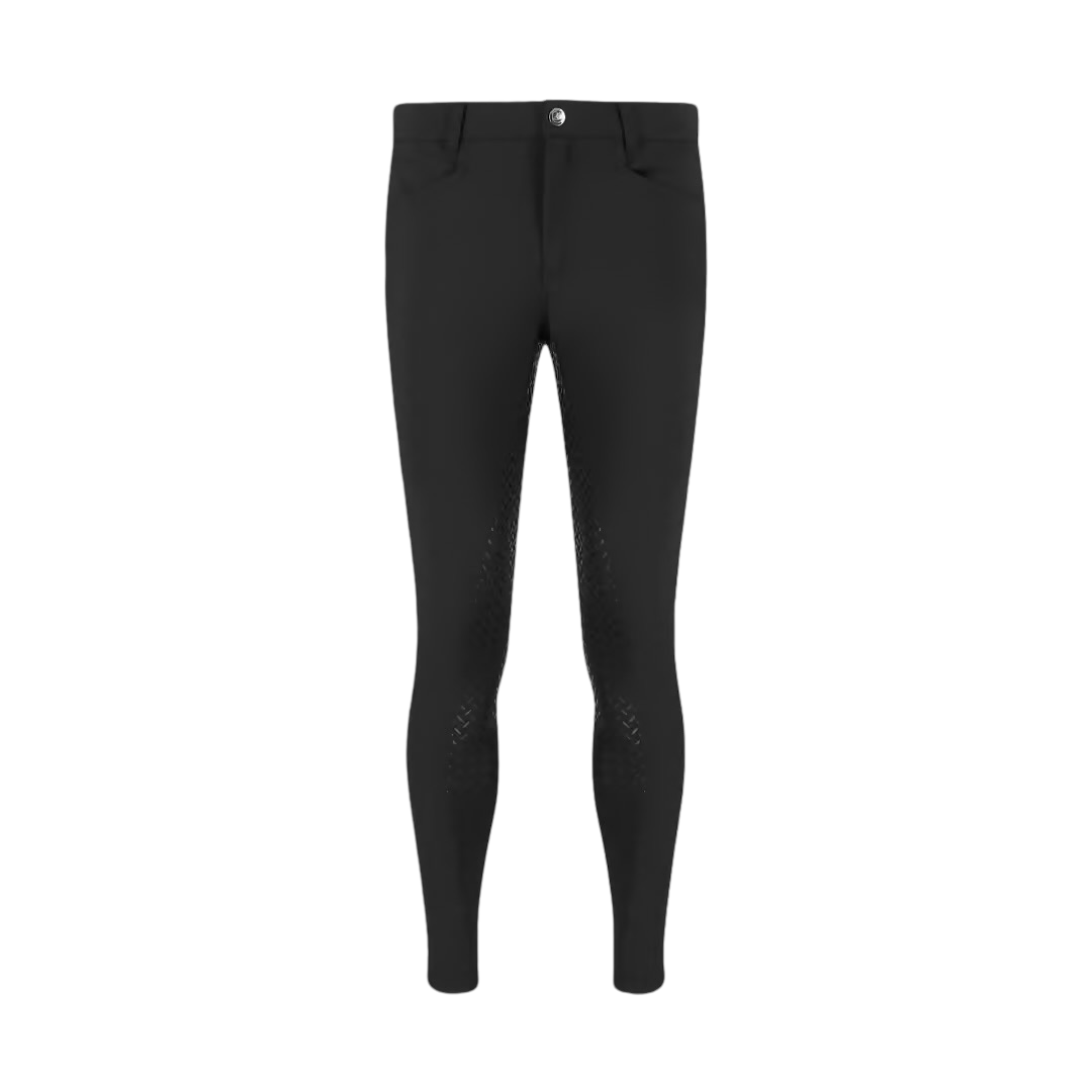 Zwei praktische Vordertaschen sowie zwei aufgesetzte Gesäßtaschen runden das funktionale Design ab. Der elastische Beinabschluss sorgt für einen perfekten Sitz unter Reitstiefeln oder Chaps und verhindert Druckstellen.