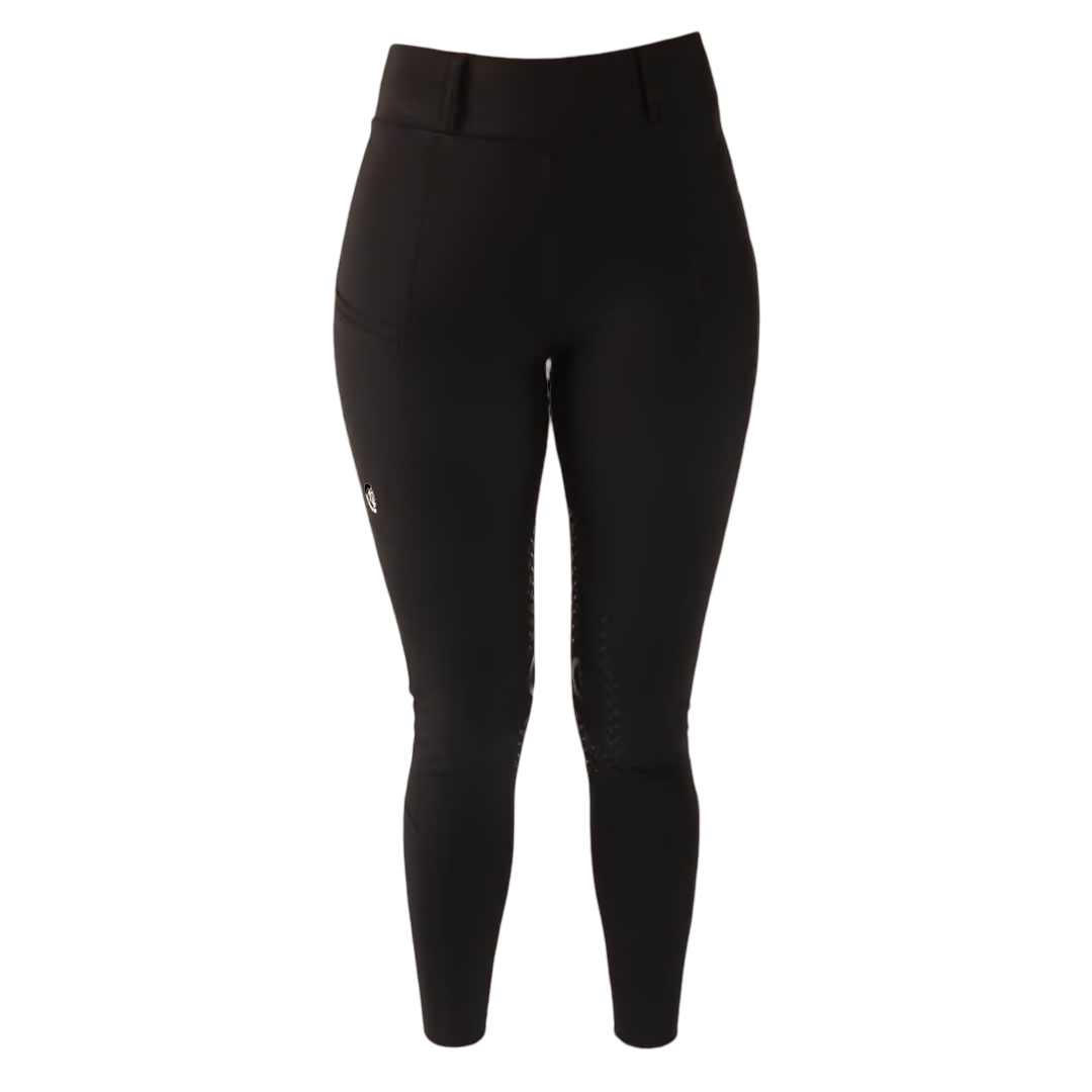 Der hochwertige Silikon-Kniegrip sorgt für zuverlässige Stabilität und optimalen Halt im Sattel, ohne die Beweglichkeit einzuschränken. Der elastische Beinabschluss schmiegt sich perfekt an dein Bein an und verhindert Druckstellen unter den Reitstiefeln oder Chaps.