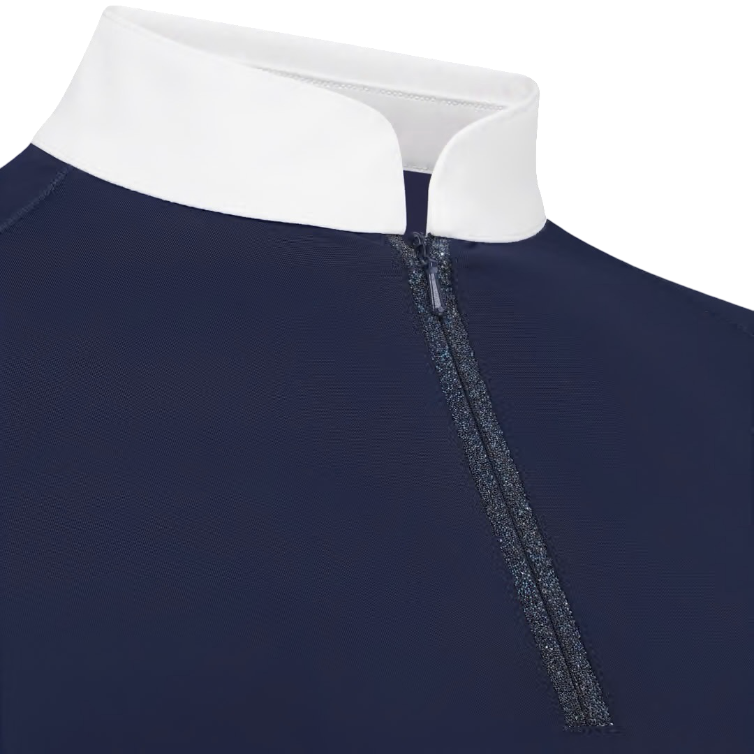 Mit dem Kentucky Classic Glitter Turniershirt in Navy entscheidest du dich für ein funktionales und zugleich elegantes Turniershirt, das Performance und Design perfekt kombiniert. Ideal für Reiterinnen, die auch im Wettkampf Wert auf Stil legen.
