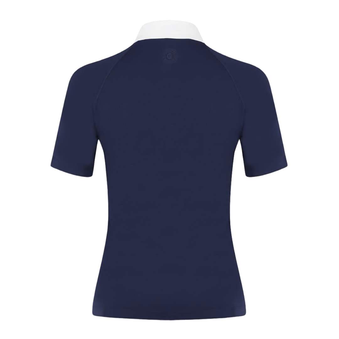Das leichte, flexible Material bietet maximale Bewegungsfreiheit und passt sich angenehm dem Körper an. Gleichzeitig garantiert es einen hohen Tragekomfort – auch bei langen Turniertagen. Der elegante weiße Kragen verleiht dem Shirt eine edle Optik, während die versteckte Knopfleiste für ein modernes, cleanes Erscheinungsbild sorgt.
