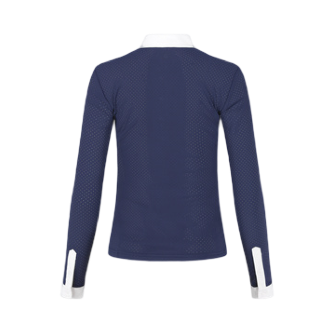 Das Kentucky Turniershirt Heritage Air für Damen in Navy vereint elegantes Turnierdesign mit moderner Funktionalität. Das leichte, flexible Material sorgt für maximale Bewegungsfreiheit im Sattel, während der perforierte Funktionsstoff eine besonders hohe Atmungsaktivität bietet – ideal für warme Turniertage oder intensive Prüfungen.