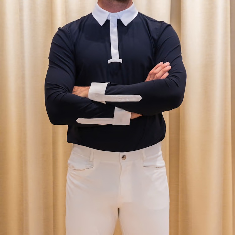 Das leichte, flexible Material bietet maximale Bewegungsfreiheit und passt sich angenehm dem Körper an. Gleichzeitig garantiert es einen hohen Tragekomfort – auch bei langen Turniertagen. Der elegante weiße Kragen verleiht dem Shirt eine edle Optik, während die versteckte Knopfleiste für ein modernes, cleanes Erscheinungsbild sorgt. Mit Manschette und Knöpfen.