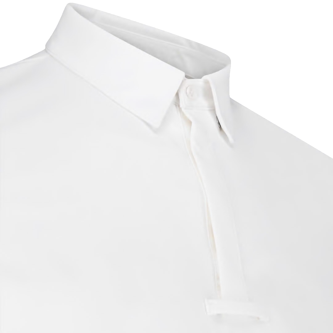 Das leichte, flexible Material bietet maximale Bewegungsfreiheit und passt sich angenehm dem Körper an. Gleichzeitig garantiert es einen hohen Tragekomfort – auch bei langen Turniertagen. Der elegante weiße Kragen verleiht dem Shirt eine edle Optik, während die versteckte Knopfleiste für ein modernes, cleanes Erscheinungsbild sorgt. Mit Manschette und Knöpfen.