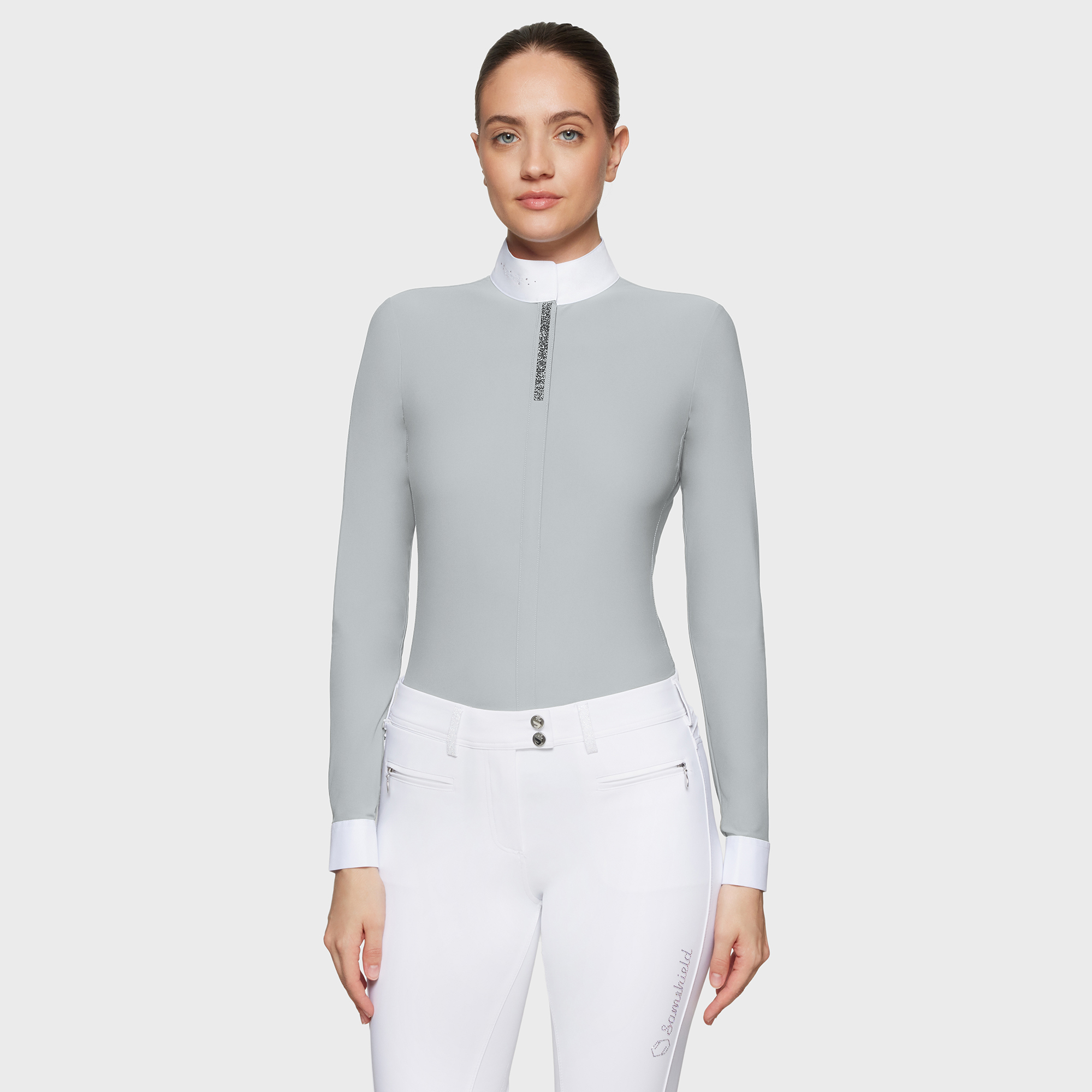 Jella Premium Damen Turniershirt von Samshield – Weiß, Langarm, edel mit Glitzer