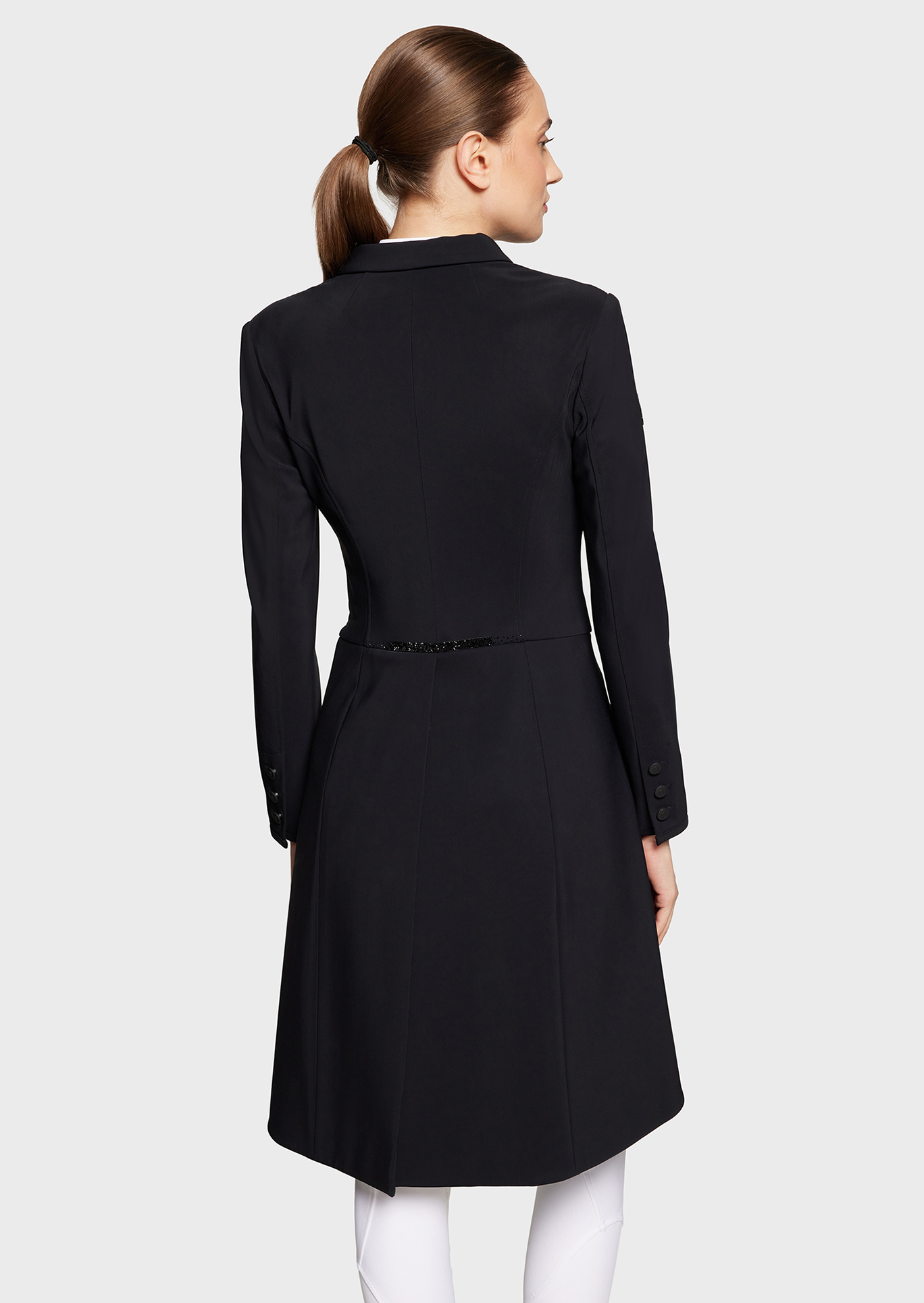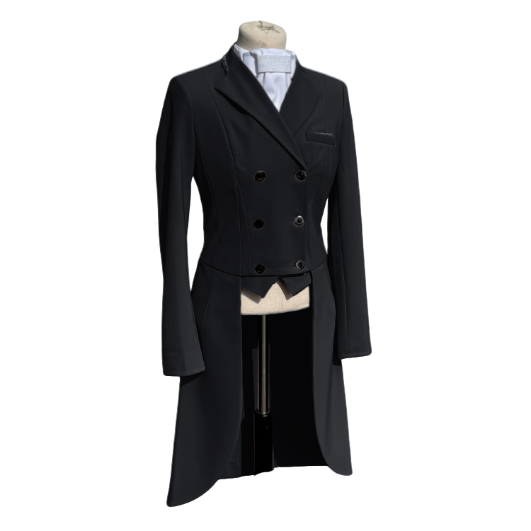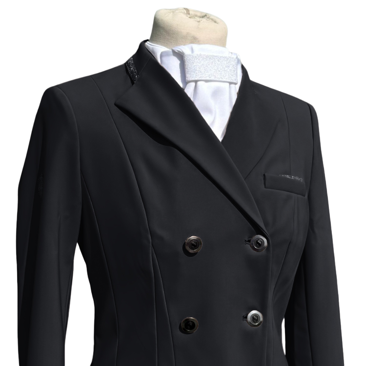 Die Samshield Frac Premium Turnierjacke verbindet technische Funktion mit stilvoller Turniermode. Das elastische, atmungsaktive Material bietet hohen Komfort und passt sich jeder Bewegung im Sattel optimal an.