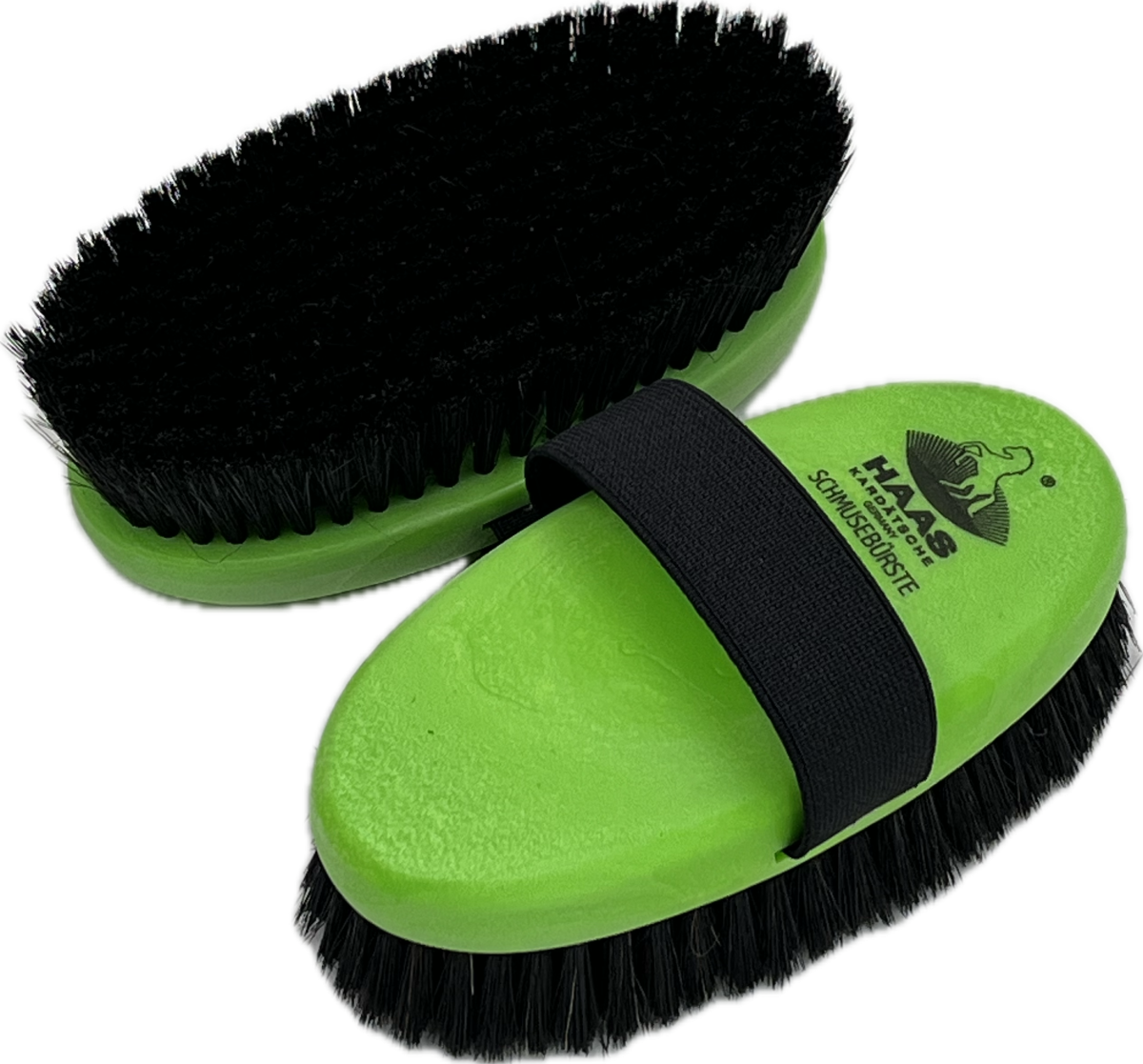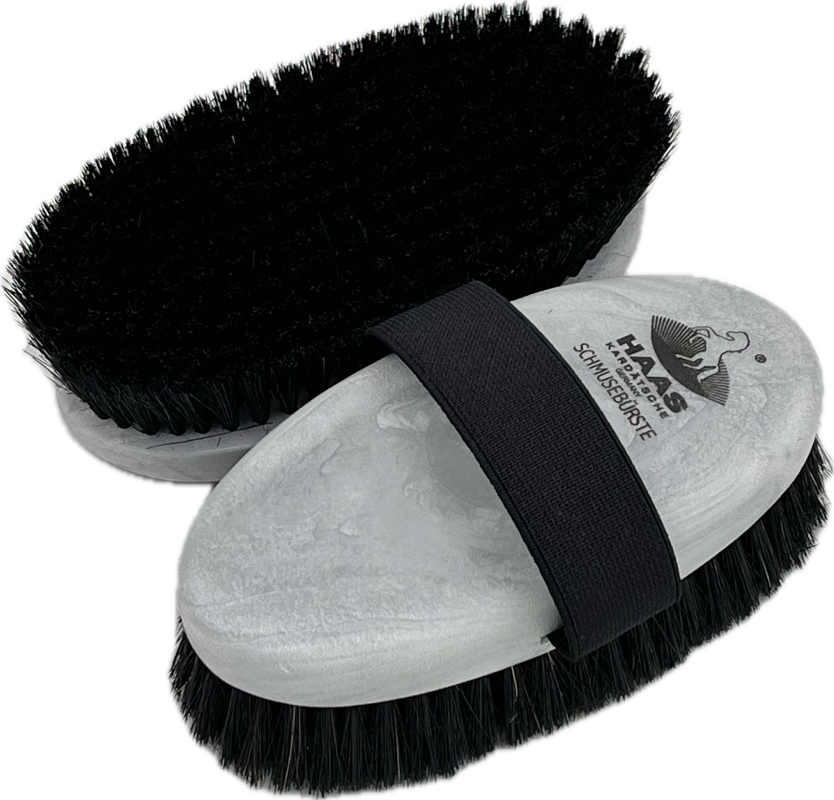 Die Haas Schmusebürste Soft ist die ideale Wahl für besonders sensible Pferde und alle Bereiche, an denen eine sanfte, wohltuende Pflege gefragt ist. Mit ihrer weichen, schwarzen Borstenmischung garantiert sie nicht nur eine angenehme Massagewirkung, sondern auch eine schonende Reinigung – perfekt zum „Sauberschmusen“.