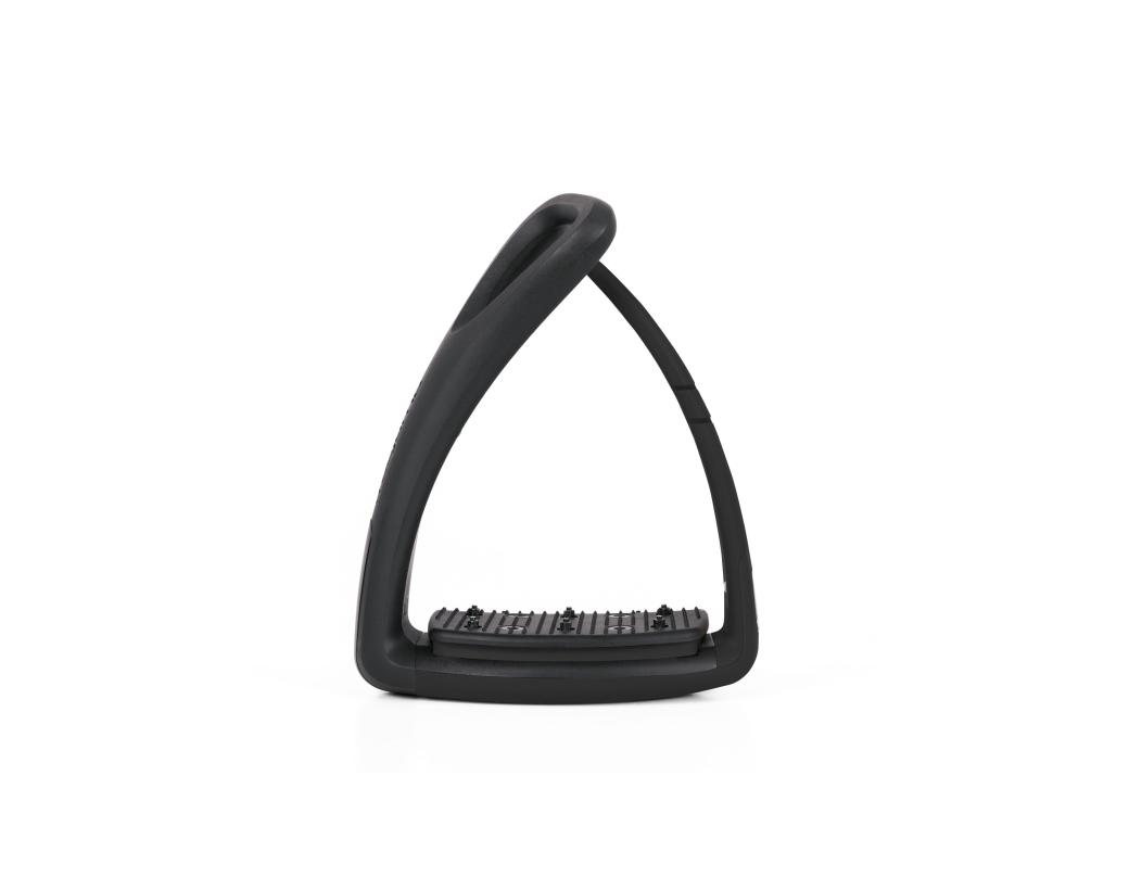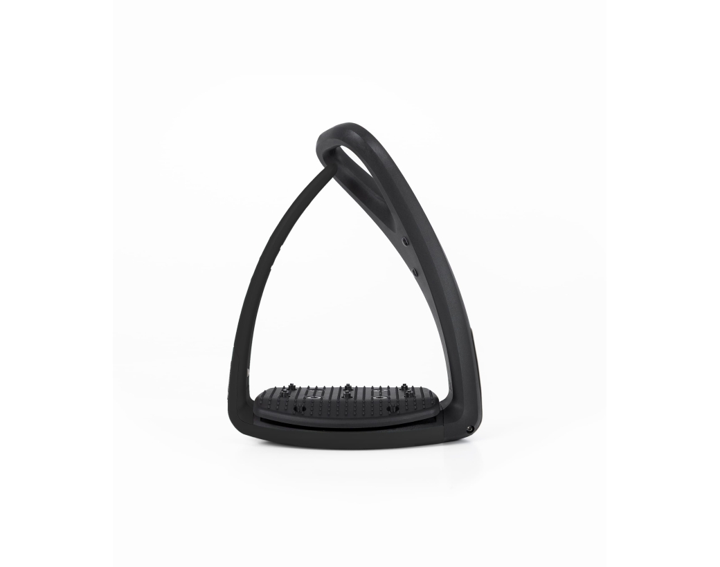 Für mehr Komfort im Sattel sorgt das integrierte Dämpfungssystem: Eine Kombination aus Federstahl und elastischem Element reduziert die einwirkenden Kräfte deutlich und schont sowohl die Gelenke des Reiters als auch den Rücken des Pferdes. Der leicht versetzte Schwerpunkt hilft zusätzlich, eine ruhige und ausbalancierte Haltung einzunehmen.
