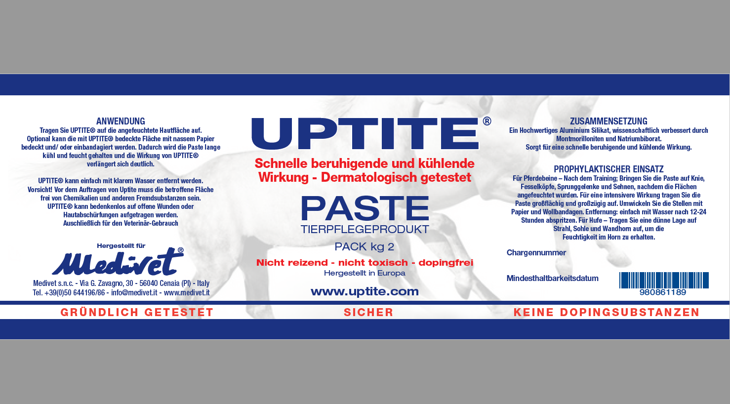Wie kaum ein anderes Produkt sorgt Uptite für eine schnelle Regeneration der Pferdebeine, etwa zwischen zwei Wettkampftagen oder nach Belastungsspitzen im Training.