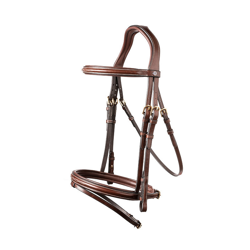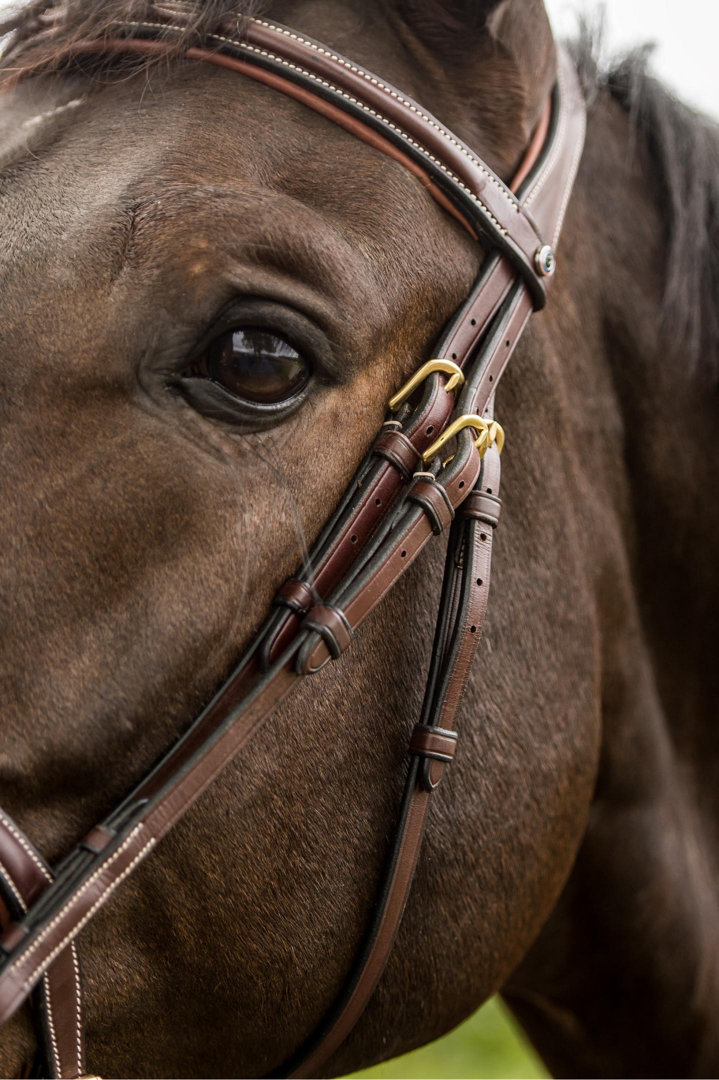 Das anatomisch geschnittene Genickstück ist im Ohrenbereich zurückgesetzt und ermöglicht mehr Freiheit sowie eine optimale Druckverteilung. Dank der weichen, nicht zu starken Polsterung bleibt der Kontakt zum Pferd besonders fein.