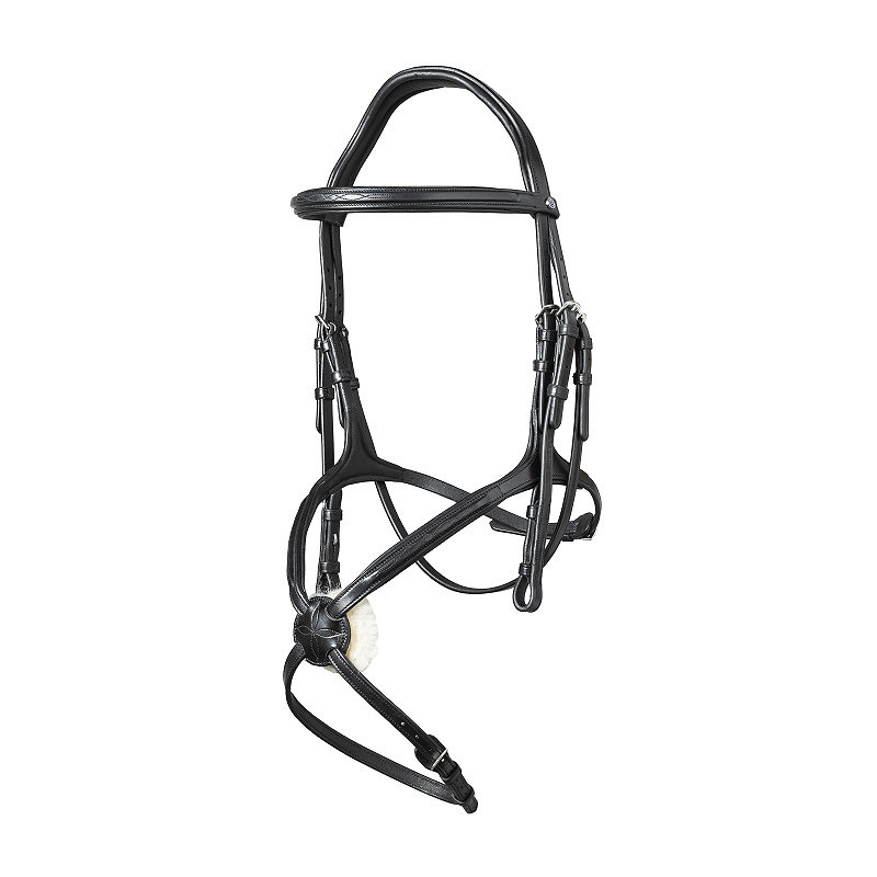 Das anatomisch geschnittene Genickstück ist im Bereich der Ohren zurückgesetzt und bietet dadurch mehr Freiheit. Die weiche, schlank gehaltene Polsterung ermöglicht einen direkten, feinen Kontakt zum Pferd. Eine elegante Zierstickerei auf Stirn- und Nasenriemen verleiht dem Zaumzeug eine stilvolle und hochwertige Optik.