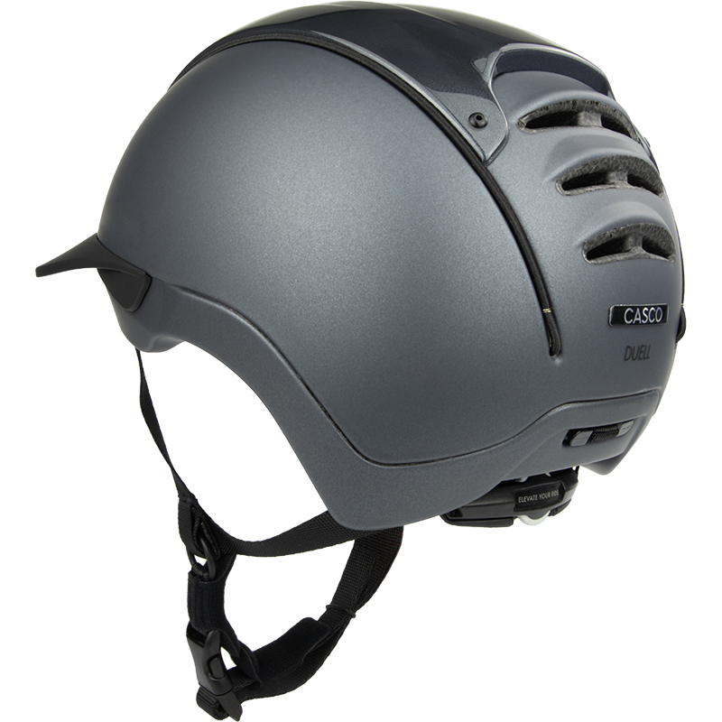 Der DUELL Reithelm überzeugt durch seine moderne Optik aus mattem Grau in Kombination mit glänzenden Metallic-Details – zurückhaltend, hochwertig und zeitlos.